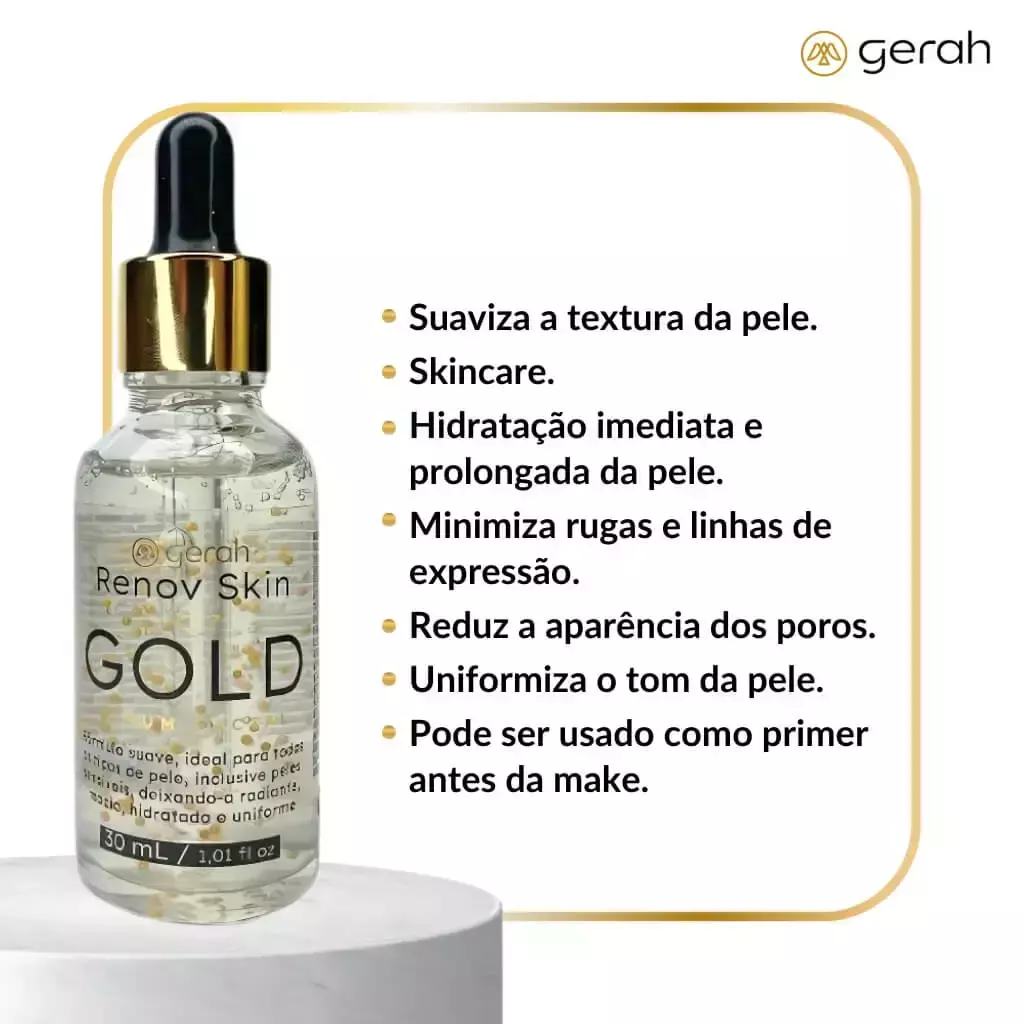 Desperte sua beleza interior com o Sérum Facial Gold Gerah, um verdadeiro elixir para a pele. Enriquecido com microesferas de ouro e niacinamida, este sérum foi desenvolvido para suavizar a textura, uniformizar o tom e refinar os poros, proporcionando uma pele visivelmente mais radiante e impecável. Sua fórmula avançada de liberação prolongada garante benefícios que se estendem ao longo do dia, promovendo hidratação intensa e proteção antioxidante contra os danos causados pelos radicais livres.